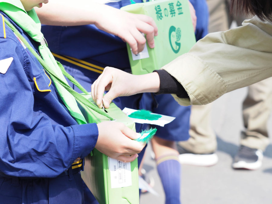 今年度始めての団行のプログラムは緑の羽募金です。