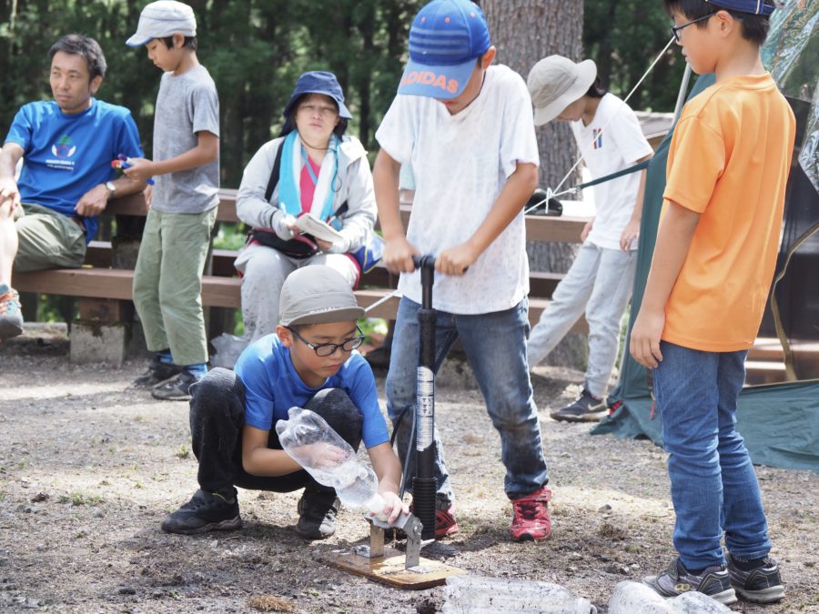 午前中はペットボトルロケット飛ばしです。