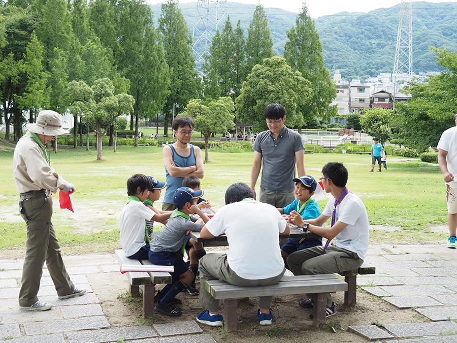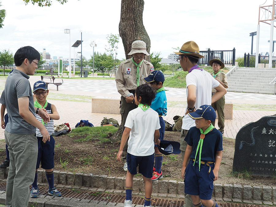 前回の長居公園のハイクで一緒だったこともありスカウトとは初めから仲良く遊ぶことができました。