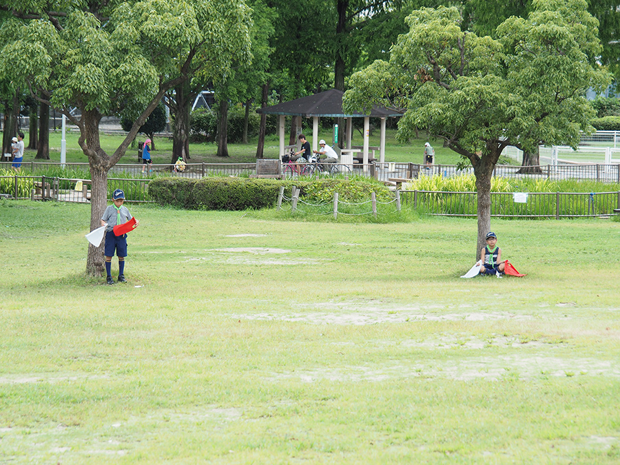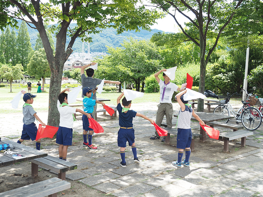 花園公園で手旗